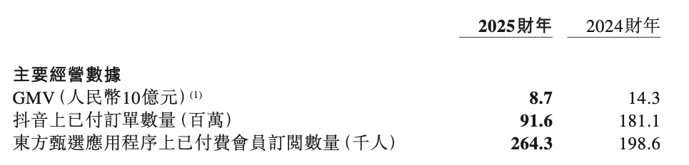 同時(shí),東方甄選也在通過會(huì)員體系強(qiáng)化用戶粘性。截至2025財(cái)年,東方甄選App付費(fèi)會(huì)員訂閱數(shù)量已達(dá)到26.43萬人。