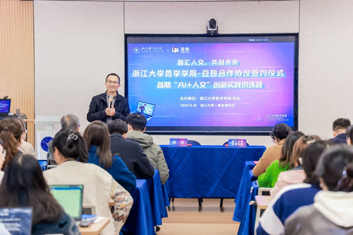 25日下午,浙江大學哲學學院-豆包合作協議簽約儀式在浙江大學紫金港校區舉行,雙方代表共同為新成立的“AI人文創新實驗室”揭牌。哲學學院院長王俊在現場表示,“AI人文創新實驗室”這個跨界舞臺不是新技術和人文的簡單疊加,而是要構建一套“人文引領技術、技術反哺人文”的共生體系。希望借助此次合作,培養學生“用人文思維駕馭技術、用技術手段闡釋人文”的復合能力。