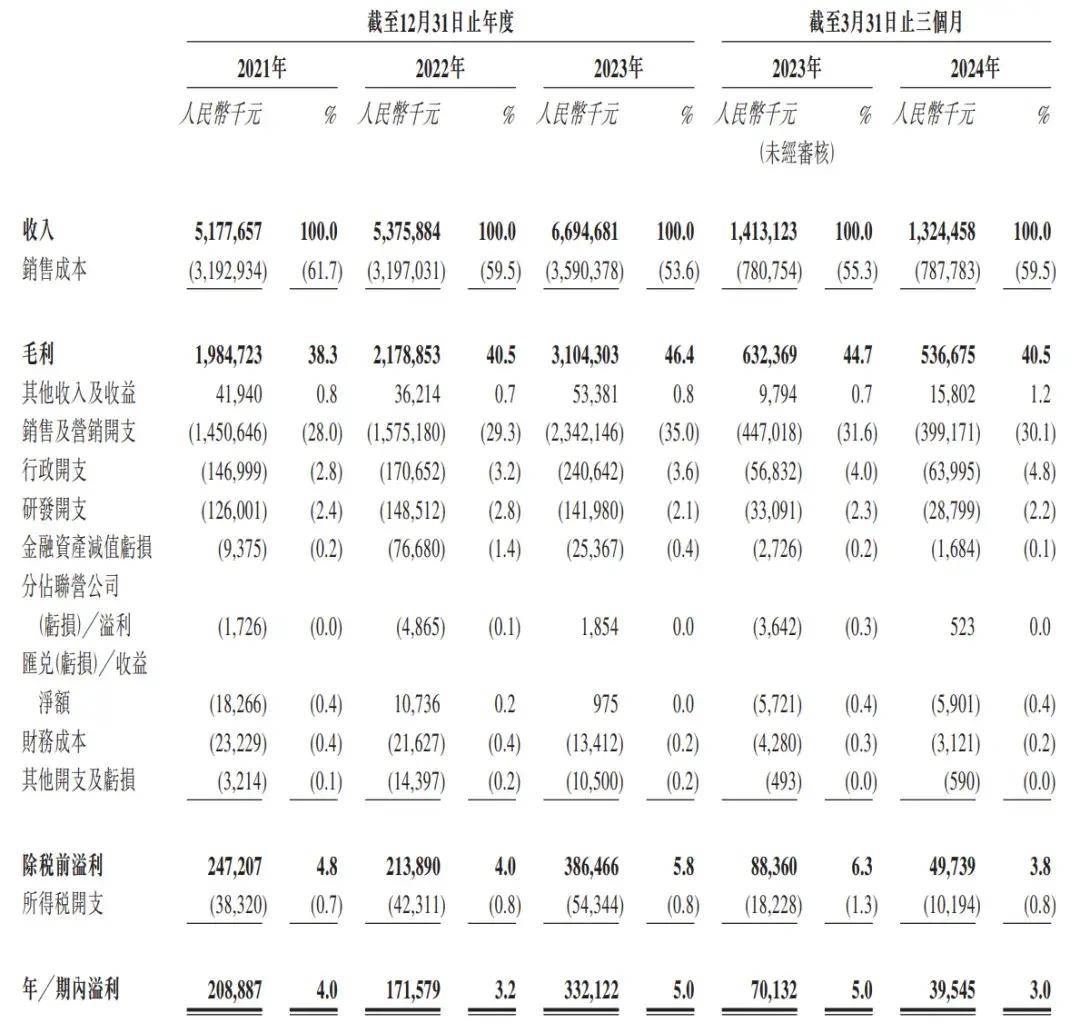 吉宏科技2021年、2022年、2023年期內盈利分別為2.09億元、1.72億元、3.32億元;期內利潤分別為4%、3.2%、5%。