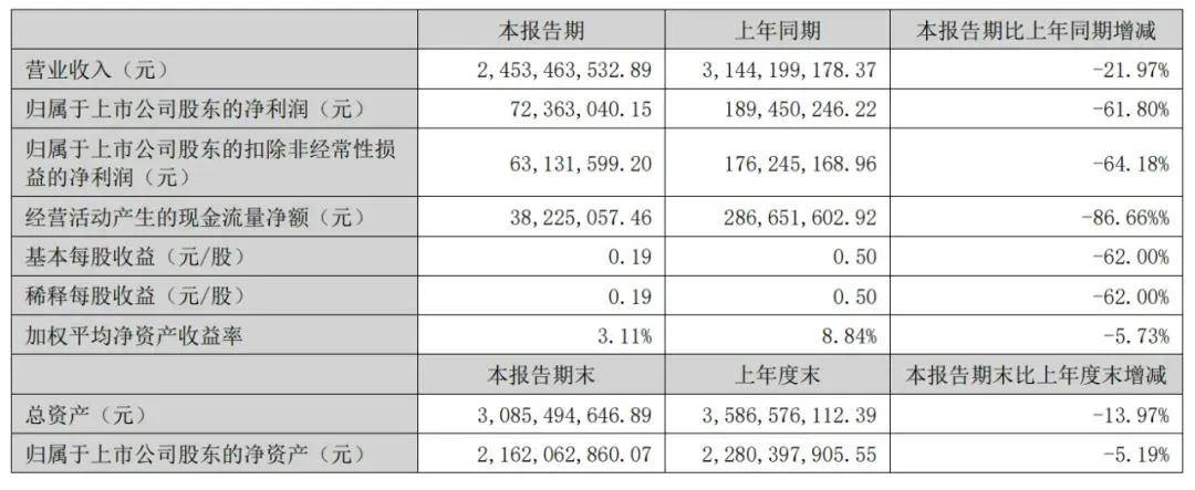 吉宏科技2024年上半年營收為24.53億元,較上年同期的31.44億元下降22%;凈利為7236萬元,較上年同期的1.89億元下降61.8%;扣非后凈利為6313萬元,較上年同期的1.76億元下降64%。