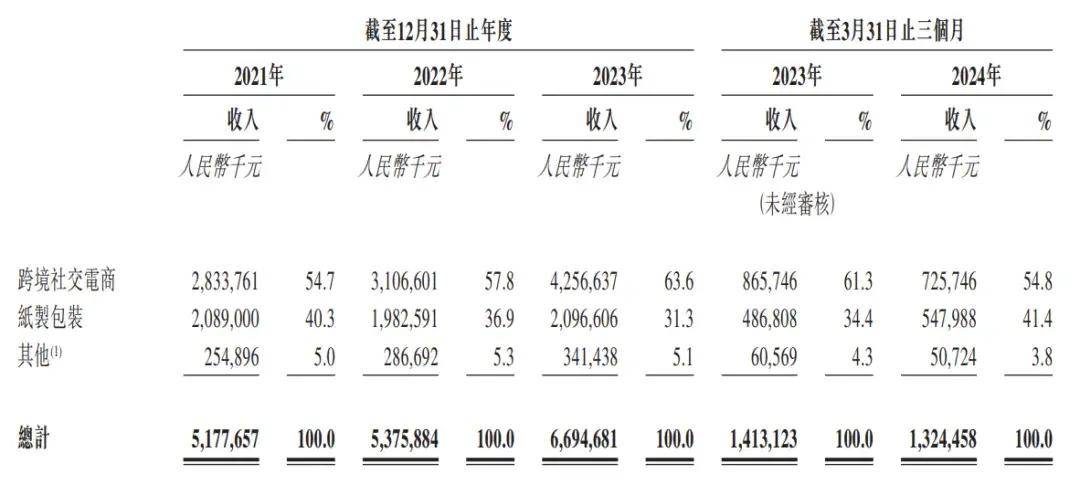 吉宏科技2024年第一季度來自跨境電商的收入為7.26億元,較上年同期的8.66億元下降16%,占比為63.6%,上年同期占比為54.8%;紙制包裝收入為5.48億元,較上年同期的4.87億元增長12.5%,占比為41.4%。