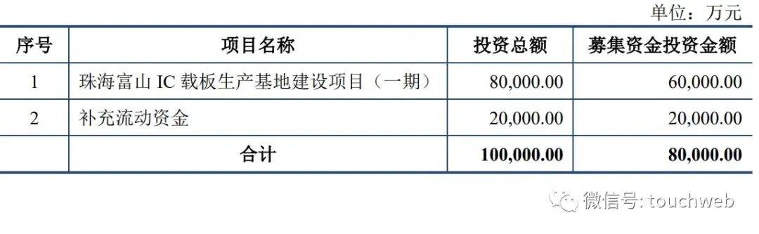 和美精藝計劃募資8億元,其中,6億元用于珠海富山IC載板生產基地建設項目(一期),2億元用于補充流動資金。