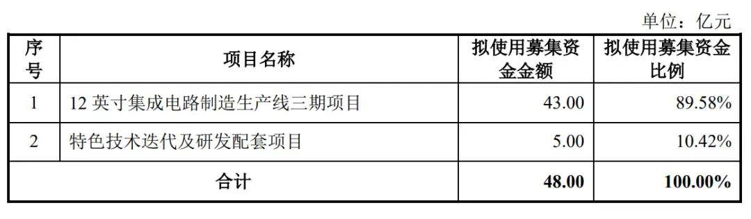新芯股份計(jì)劃募資48億元,其中,43億元用于12英寸集成電路制造生產(chǎn)線三期項(xiàng)目,5億元用于特色技術(shù)迭代及研發(fā)配套項(xiàng)目。