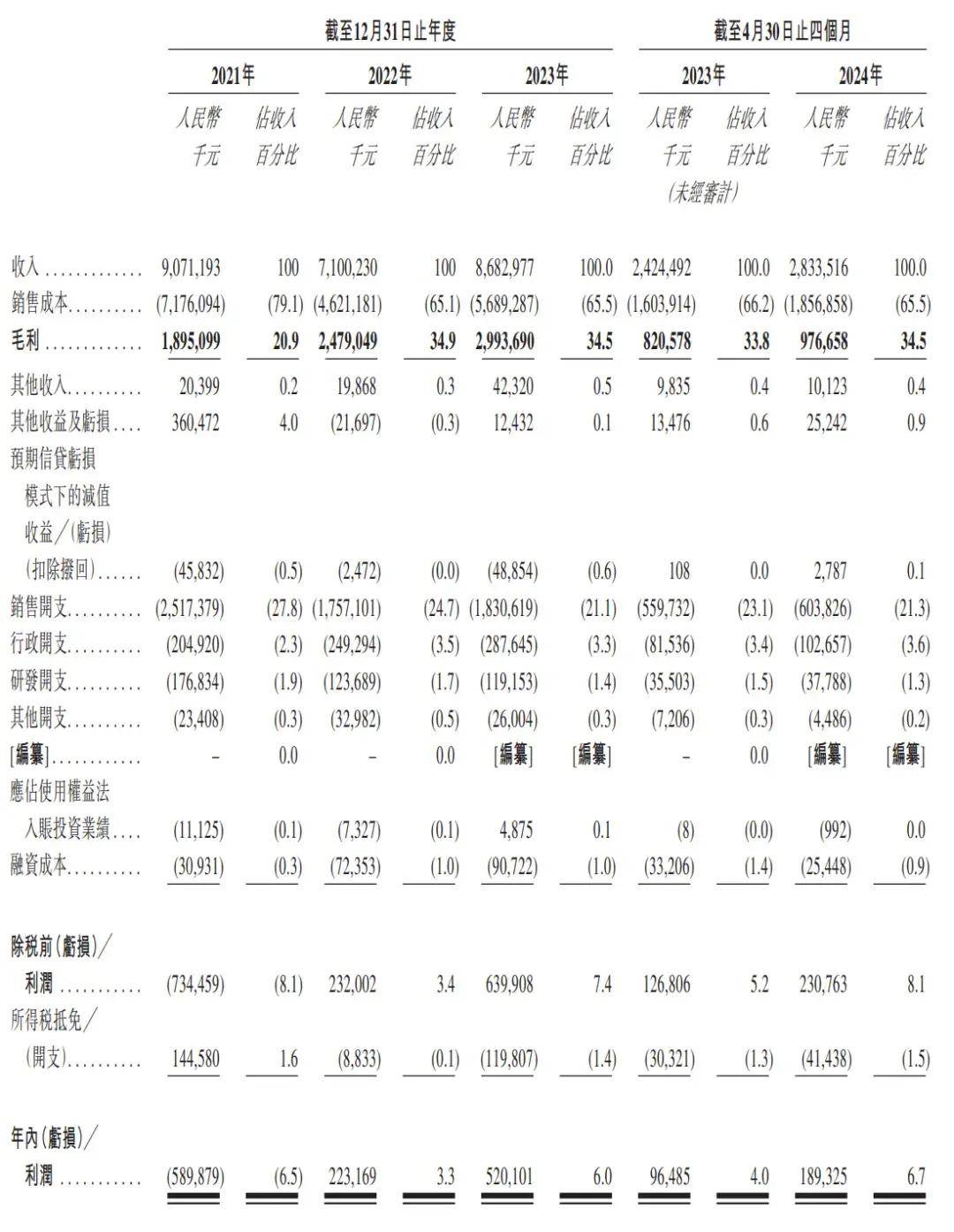 傲基科技2024年前4個(gè)月年內(nèi)利潤(rùn)為1.89億元,年內(nèi)利潤(rùn)率為6.7%。