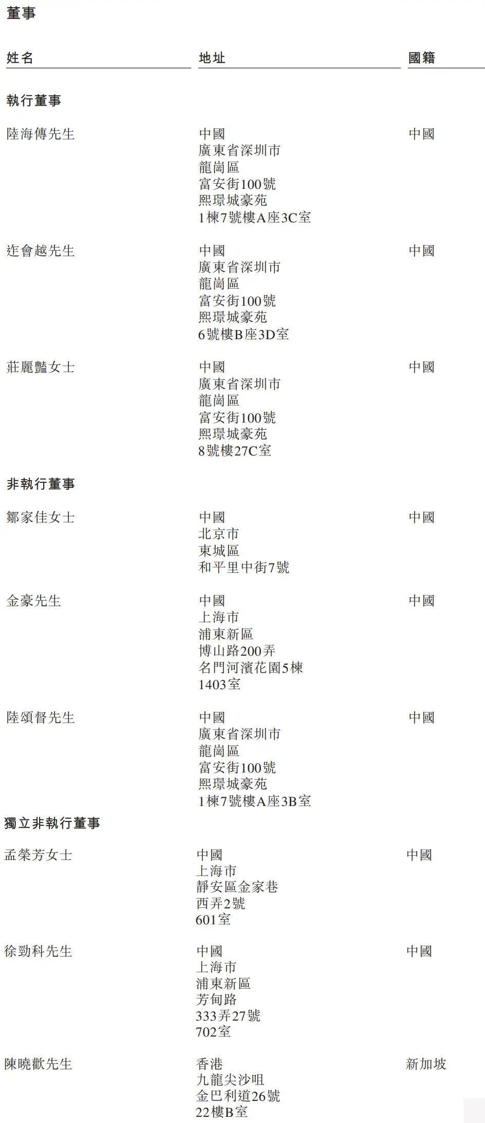 傲基科技執(zhí)行董事分別為陸海傳、迮會(huì)越、莊麗艷女士;非執(zhí)行董事分別為鄒家佳女士、金豪、陸頌督;獨(dú)立非執(zhí)行董事分別為孟榮芳女士、徐勁科、陳曉歡。
