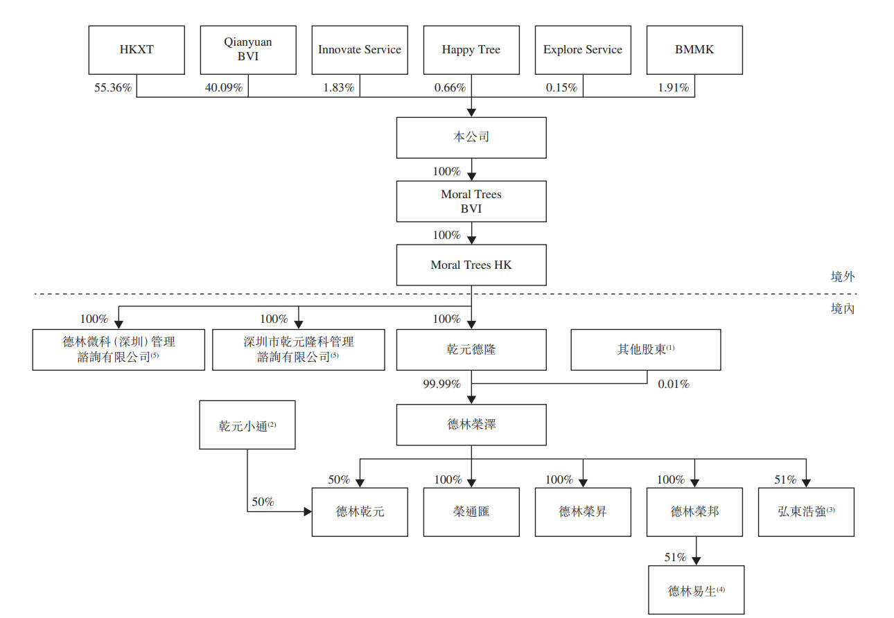 高林濤通過Qianyuan BVI持股為40.09%,漫道投資通過BMMK持股為1.91%。
