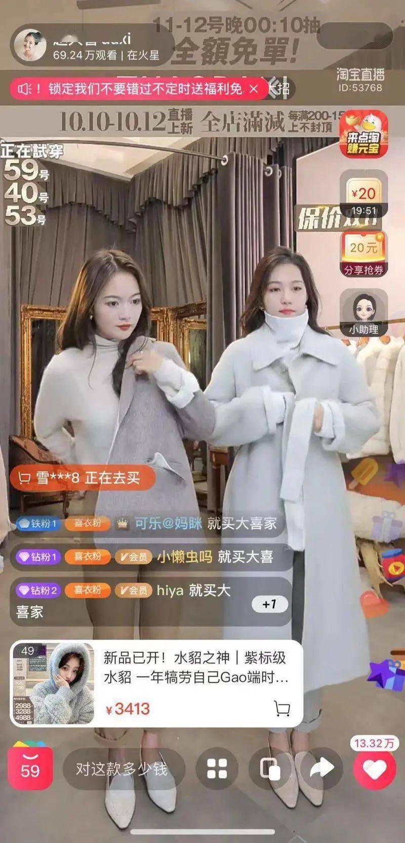 淘寶主播直播間的水貂大衣 圖源/淘寶App