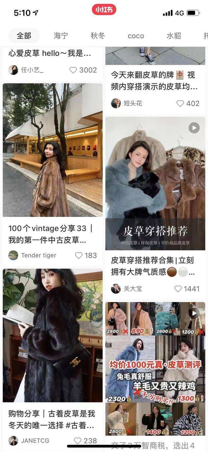 但現在,隨著皮草的款式逐漸豐富,蘭心的朋友也逐漸覺得皮草大衣好看了起來。“我們學生大多會穿一些淺色,可愛的,并不是富婆們的款式。’土味’可以通過穿搭彌補。”大學三年,在她的種草下,幾個南方的同學也備了皮草外套。