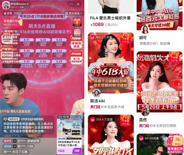 放眼整個直播電商賽道,“618”等大促節點向來是頭部主播的“兵家必爭之地”。平臺則一手抓用戶爆發式購物需求,一手抓品牌蜂擁而上頻頻讓利的機制,并不斷推高頭部主播直播間GMV,以大促為切入口進一步拉高頭部主播的整體影響力。