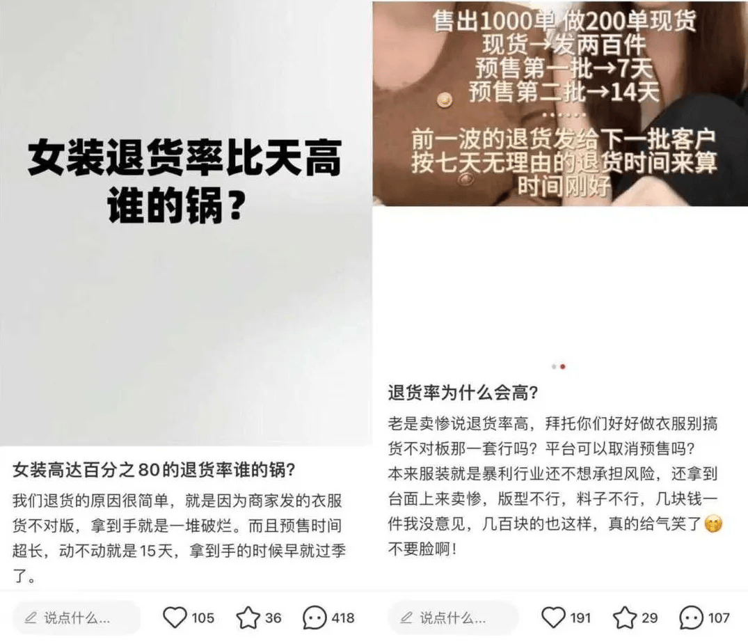 圖:社交平臺上關于“退貨率高”的討論來源:《聽筒Tech》截圖