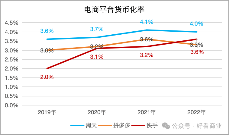國信證券的統計顯示,2023年拼多多貨幣化率約4.5%,淘寶天貓的貨幣化率約為3.77%;抖音電商的貨幣化率達到9%。
