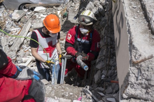 Travers:星期五上午(雷鋒網(wǎng)(公眾號:雷鋒網(wǎng))注:即9月22日),墨西哥紅十字會工作人員去一棟大樓救援時帶上了我們。在他們眼里,這只是另一個工具。他們用來搜索倒塌的建筑物中的人的主要工具基本上是一個聲波探測搜救儀,他們會用它貼在搜救區(qū)域的混凝土上,然后用高功率麥克風(fēng)尋找幸存者。