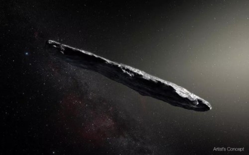 小行星1I/2017 U1 ,被它的發現者們命名為‘Oumuamua(發音:oh MOO-uh MOO-uh),在夏威夷語里,它的意思是“一個遠方信使”。數據顯示,小行星1I/2017 U1非常致密,由巖石組成,不含水或冰,可能還有金屬。更多的觀測發現,這顆系外小行星是一個略帶紅色的,雪茄狀的天體。