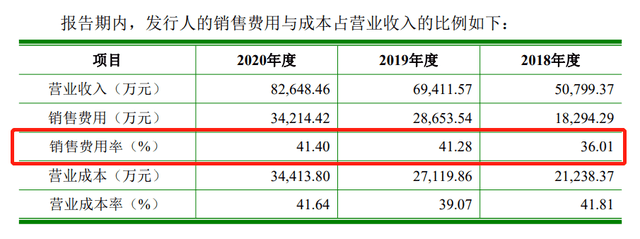 根據招股書,2018-2020年,倍輕松的銷售費用分別為1.83億元、2.87億元、3.42億元,總計高達8.12億元,銷售費用率分別為36.01%、41.28%、41.4%,銷售費用率遠高于行業平均水平。公開資料顯示,2020年度,可與倍輕松進行比較的智能硬件品牌奧佳華、石頭科技、科沃斯的銷售費用率分別為15.77%、12.36%、23.27%。