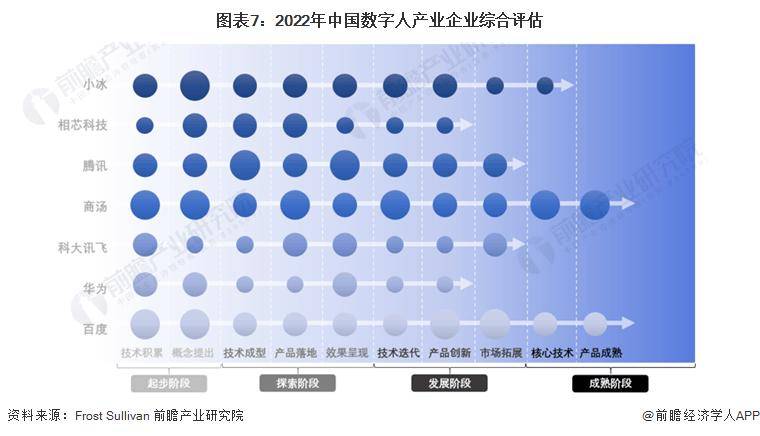 沙利?所發布的《2022年中國數字?市場觀測報告-里程碑》從發展階段角度評估數字人主要企業的競爭力,根據該報告,雖然行業賽道仍處于早期,但是小冰、百度、商湯成為闖入成熟階段的三家頭部企業。