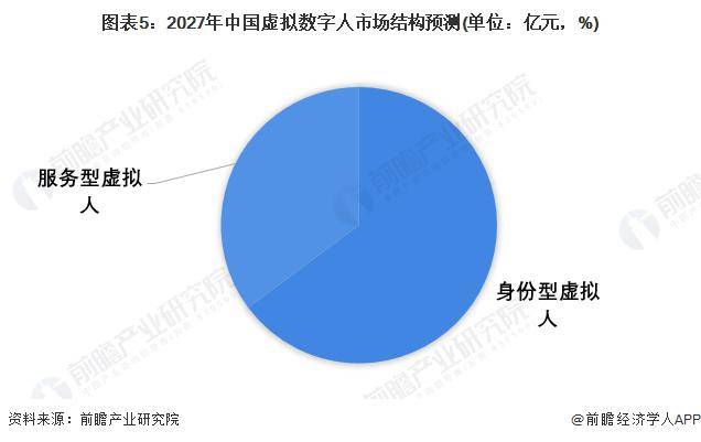 相較于元宇宙的落地,虛擬人目前的發展更加“肉眼可見”,不少現有職業將可能被替代。短期來看,虛擬人目前一般分為服務型與身份型兩種。前者可在特定場景提供服務,替代諸多服務行業的社會角色,例如企業員工、主持人、管家等,后者更傾向于在文娛領域應用,例如虛擬偶像、虛擬主播等。中國虛擬數字人市場規模預計在2030年達到2700億元,其中身份型虛擬人市場規模占比有望達到2/3。