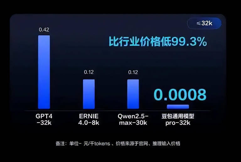 國內大模型廠商價格戰隨即開啟。5月15日,在春季火山引擎Force原動力大會上,字節主力模型在企業市場定價只有0.0008元/千Tokens,比行業價格低99.3%,讓大模型從“以分計價”進入到“以厘計價”階段。