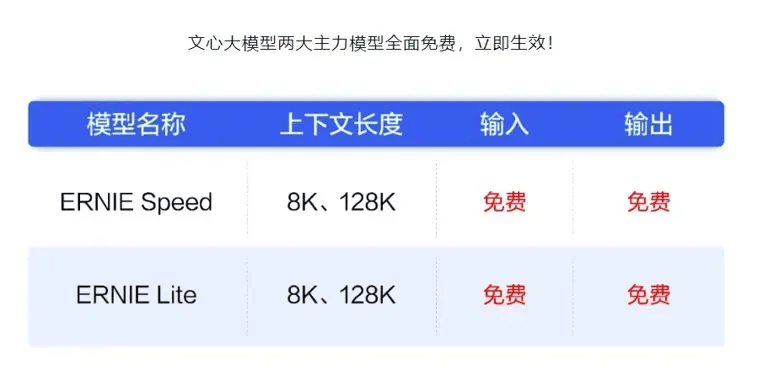 ▲圖:百度文心大模型降價產品信息