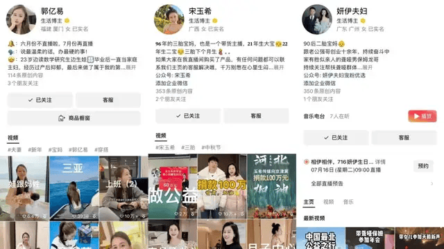 更重要的是,放眼望去,這些主播達人有很多共同點,基本都是“90后二胎寶媽”“85后創業夫妻”等接地氣人設,平時短視頻講的是婆婆媽媽、家庭倫理的內容。