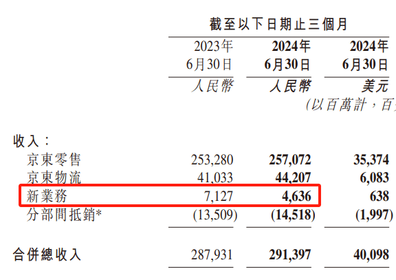 京東做得更為徹底,其新業務(包括達達、京東產發、京喜和海外業務)今年第二季度的營收同比大跌35%。