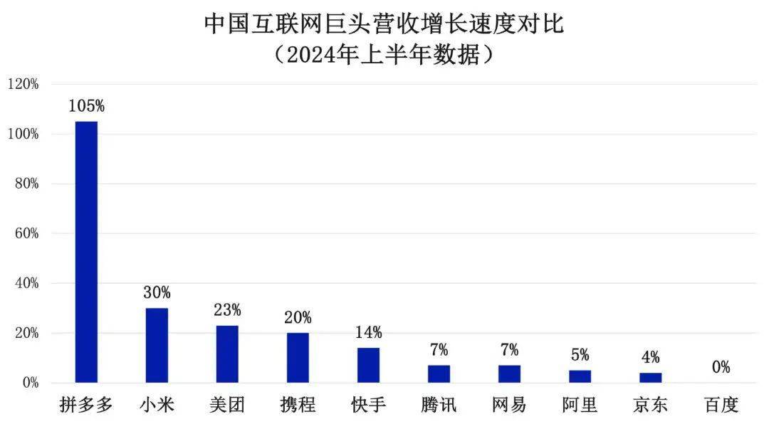 從上半年的營收同比增長率看,只有拼多多、小米、美團、攜程四家公司超過了20%。