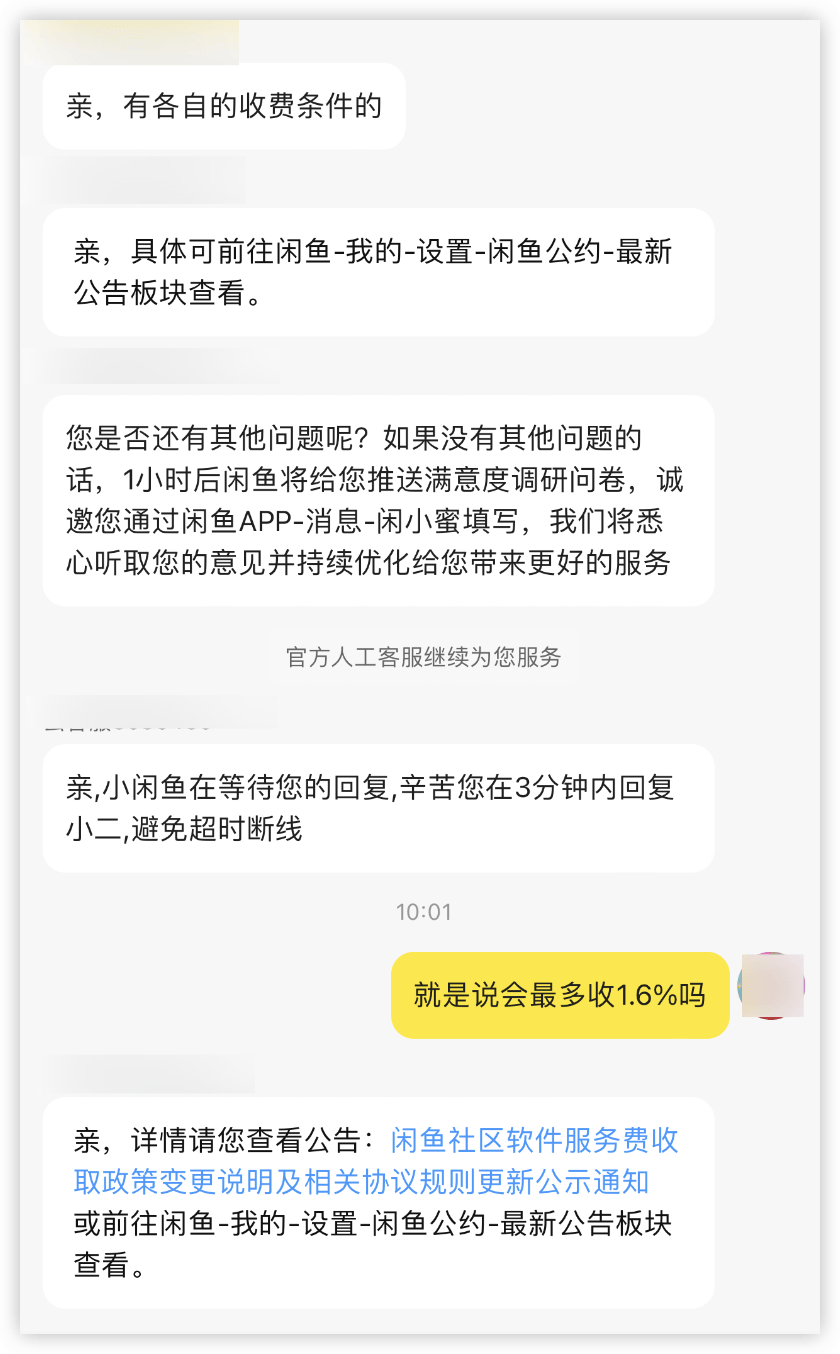 3,賣家認(rèn)為閑魚(yú)需要生存,收費(fèi)可以接受,自行承擔(dān)服務(wù)費(fèi)的。