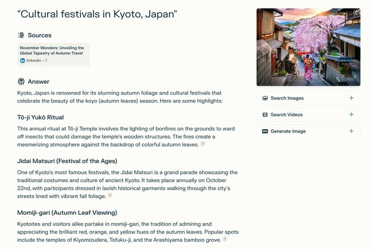 關鍵詞“日本京都的文化節慶”,唯一引用來源是一篇完全由AI生成的文章