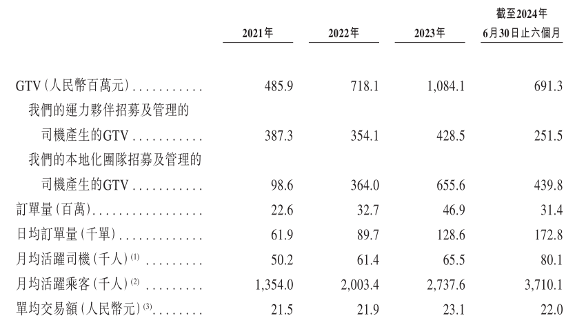 招股書中披露的財務數據顯示,365約車從2021年到2024年1-6月期間的網約車GTV(交易總額)規模分別為4.86億元、7.18億元、10.84億元及6.91億元,這其中通過高德產生的GTV占比分別為95.3%、92.9%、89.5%及93.4%,依賴性可見一斑。