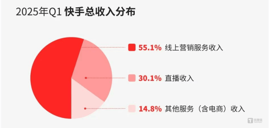 從核心財務數據來看,快手的總營收和調整后凈利潤均略高于市場預期。其中,線上營銷服務收入為179.77億元,同比增長8.0%,占總收入的55.1%;直播業務收入為98.14億元,同比增長14.4%,占總收入的30.1%;其他服務(主要是電商業務)收入為48.17億元,同比增長15.2%,占總收入的14.8%。這些數據表明,快手的主營業務在保持穩定的同時,也取得了顯著的進步。