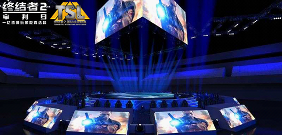 本次總決賽的戰臺設計采用360度圓型舞臺構造,中央頂部的LED屏配合環周的數面屏幕帶領觀眾們直擊戰況,激昂的音樂配上熱血硝煙的緊張氛圍,仿佛戰爭一觸即發,讓在場觀眾全方位體驗《終結者2:審判日》所帶來的游戲魅力。