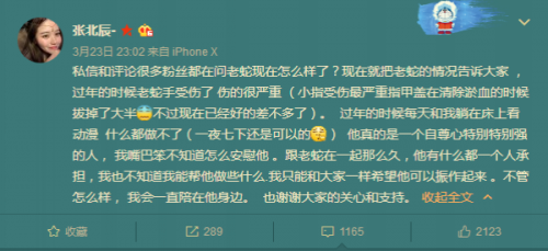 蛇哥妻子在微博透露蛇哥手指頭嚴重受傷 但還是可以一夜七下