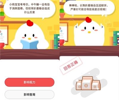 支付寶螞蟻莊園2020年8月10日莊園小課堂答案是什么?螞蟻莊園8月10日的問題是小雞寶寶考考你,中午睡一會有助于消除困倦,但經常趴著睡會造成什么后果?給出的選項是影響視力、影響視力。大家知道哪一個是正確答案嗎?下面小編為大家分享了螞蟻莊園2020年8月10日莊園小課堂正確答案,一起來了解一下吧。