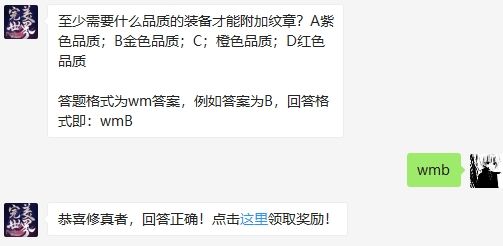 至少需要什么品質的裝備才能附加紋章 完美世界手游2020年9月9日微信每日一題
