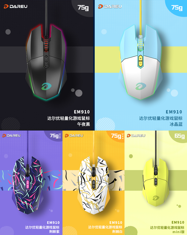 2020年9月9日,達爾優(DAREU)發布EM910牧馬人輕量化游戲鼠標。75克無打孔輕量化設計,搭載KBS按鍵衡力系統,經典達爾優牧馬人游戲鼠標再度蛻變,硬核輕裝競逐輕量化游戲時代。