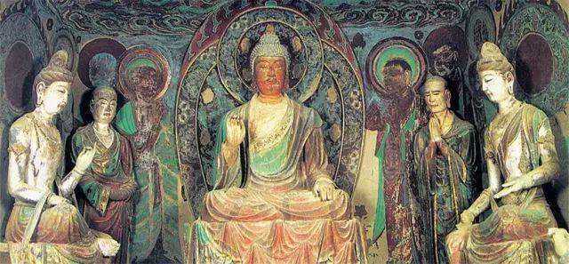 莫高窟是一座融繪畫、雕塑和建筑藝術于一體,以壁畫為主、塑像為輔的大型石窟寺。它的石窟形制主要有禪窟、中心塔柱窟、殿堂窟、中心佛壇窟、四壁三龕窟、大像窟、涅磐窟等。各窟大小相差甚遠,最大的第16窟達268平方米,最小的第37窟高不盈尺??咄庠心驹斓钣?,并有走廊、棧道等相連,現多已不存。