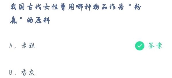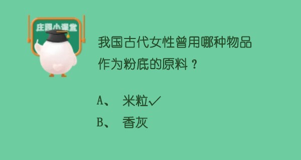螞蟻莊園7月10日答案 我國古代女性曾用哪種物品作為粉底的原料