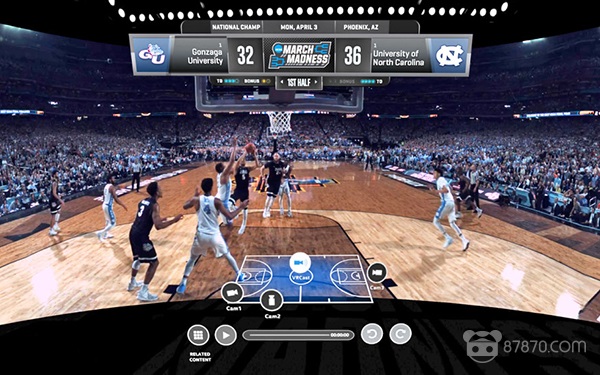體育賽事中加入VR直播已經并不新鮮,NBA、超級碗、歐洲冠軍聯賽、奧運會、中超等都引入了VR直播或者錄播。而今年的NCAA全美籃球賽,也將加入VR內容。