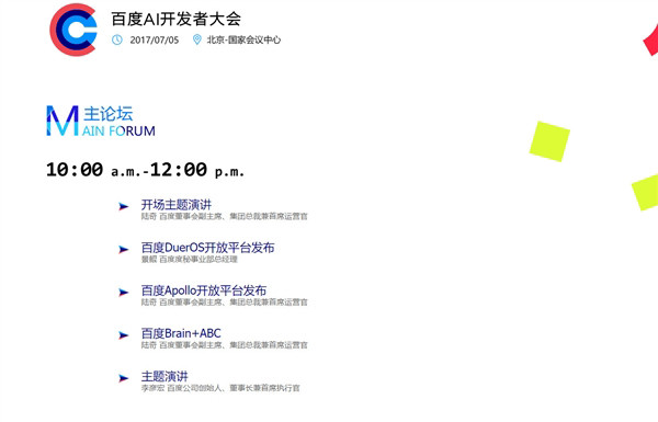 據大會官網信息顯示,百度創始人兼CEO李彥宏和百度集團總裁兼COO陸奇都將出席大會,并首次發布百度人工智能開放平臺的整體戰略、技術和解決方案。除此外,百度在其他領域的技術帶頭人和資深科學家也將悉數登場,分享最前沿的技術動態和開放戰略。