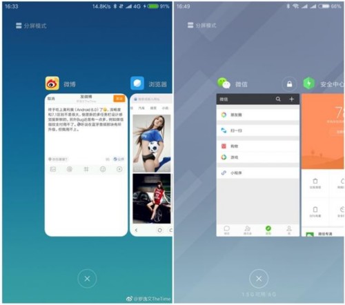 如圖所示,小米6安卓8.0版MIUI多任務(wù)界面的每個(gè)App預(yù)覽圖變成了圓角矩形,和之前的直角區(qū)別明顯。