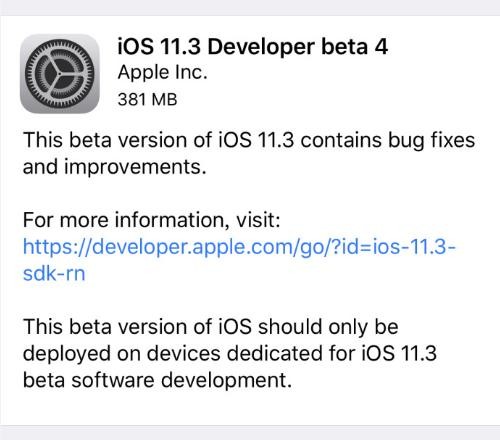 蘋果推送iOS 11.3新測試版 正式版預計會在本月發布
