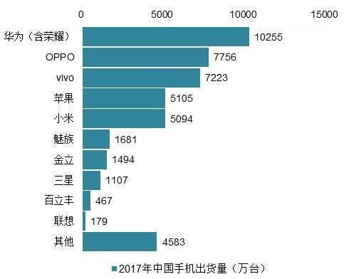 從16年到17年,排名國(guó)內(nèi)手機(jī)行業(yè)前四名的手機(jī)廠商,其市場(chǎng)份額無(wú)一例外地獲得增長(zhǎng)。反過(guò)來(lái)講,排在后面的廠商生存空間被進(jìn)一步擠壓。
