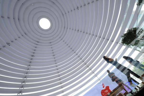 9月10日,顧客光顧新加坡濱海灣的水上蘋果零售店。