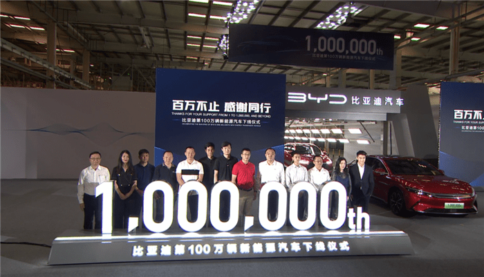 今天,比亞迪第100萬輛新能源車下線。比亞迪成為中國第一家/全球第三家新能源車銷量破百萬的車企。