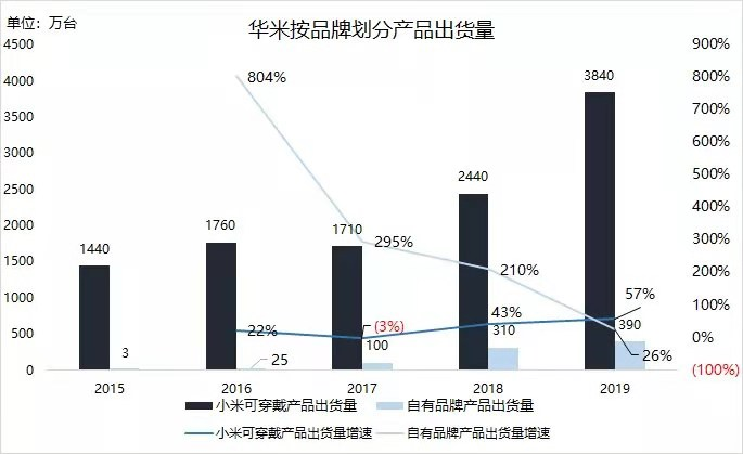 盡管近年來華米科技自主品牌產(chǎn)品的比例一直在上升,但來自小米可穿戴產(chǎn)品的收入仍然占到了公司總營收的半數(shù)以上。