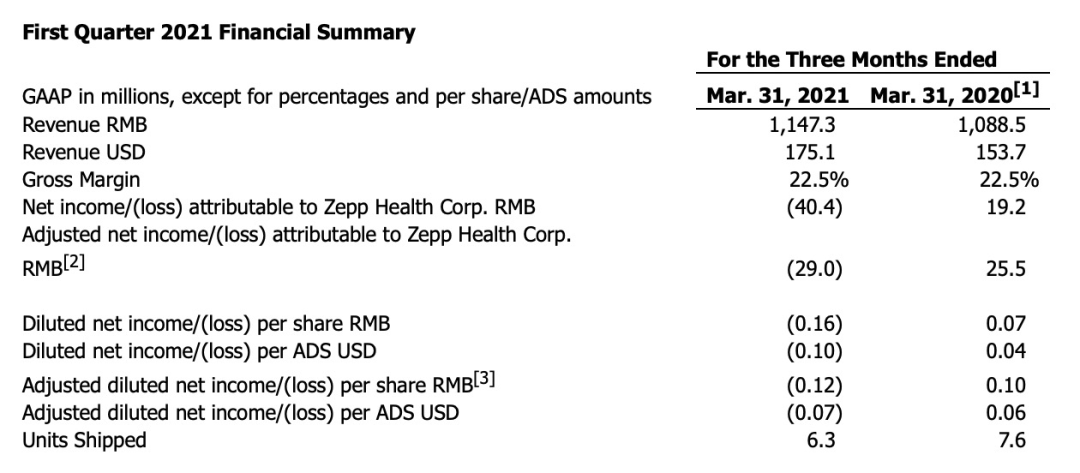 據(jù)財(cái)報(bào)披露,2021年第一季度華米總營收11.47億元,較2020年的10.88億元同比增長5.4%,營收增速跌至谷底。其中,小米產(chǎn)品貢獻(xiàn)營收較去年下降39.9%,自主品牌營收增長84.4%。但毛利率卻與去年持平,同為22.5%。