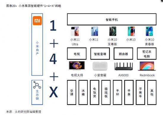 小米集團的IoT戰(zhàn)略是從手機出發(fā),逐步涵蓋周邊的各類產(chǎn)品,包括智能音箱、智能電視等,不斷滲透用戶生活,小米只負責(zé)部分產(chǎn)品的開發(fā)和制作,其它則交由小米生態(tài)鏈中的企業(yè)來完成。