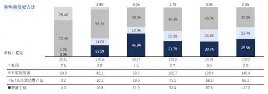 通過AIoT,小米用更多有價值、長粘性的設(shè)備,產(chǎn)生和用戶的有價值交互以獲得新的流量,再向廣告、游戲、金融等高毛利業(yè)務(wù)進行轉(zhuǎn)化,目前,小米的AIoT平臺已連接的設(shè)備(不含手機和筆記本電腦)達3.24億臺,同比增長38%,這些寶貴的流量,都能進一步支持小米“變現(xiàn)”,去年,小米互聯(lián)網(wǎng)服務(wù)的毛利率可是高達61.7%。