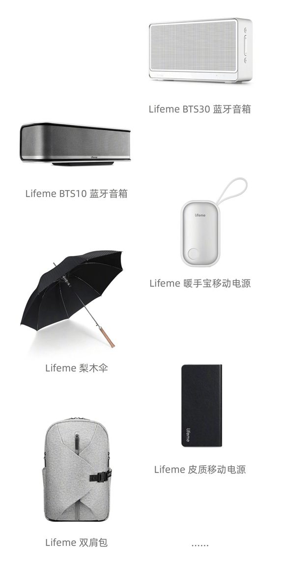 “魅友”們估計對這六款產品還是頗為熟悉的,分別是Lifeme BTS30藍牙音箱、Lifeme BTS10藍牙音箱、Lifeme暖手寶移動電源、Lifeme梨木傘、Lifeme皮質移動電源和Lifeme雙肩包,其中雙肩包更是一度出圈。