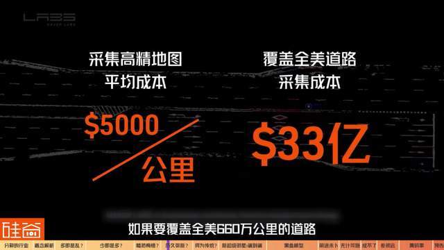 但是,制作高精地圖非常昂貴,自動駕駛公司采集高精地圖的平均成本大約為每公里5000美元,如果要覆蓋全美660萬公里的道路,光是采集成本都達到了33億美元。