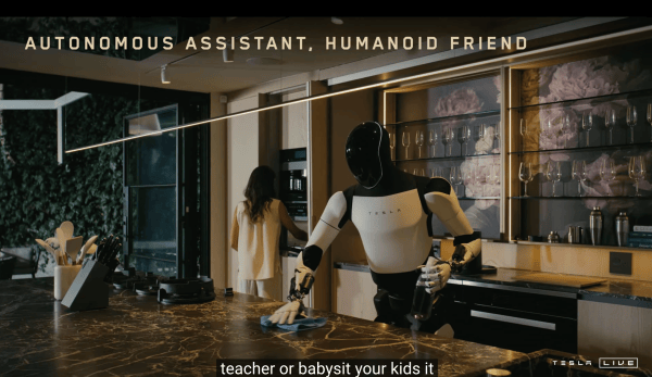 Optimus(以同名的《變形金剛》角色命名),也稱為Tesla Bot,是特斯拉公司正在開發的通用人形機器人。它于2021年8月19日在特斯拉的人工智能日(AI Day)活動上宣布,并在2022年展示了一個原型。2023年3月,特斯拉發布第一代“Optimus Gen 1”,同年12月14日,更新第二代“Optimus Gen 2”。馬斯克在2022年曾表示,他認為Optimus“有可能隨著時間的推移比特斯拉的汽車業務更具意義”。